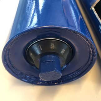 Klassieke stalen draagrol met stalen gelaste lagerpotten. Gecoat in blauwe kleur.